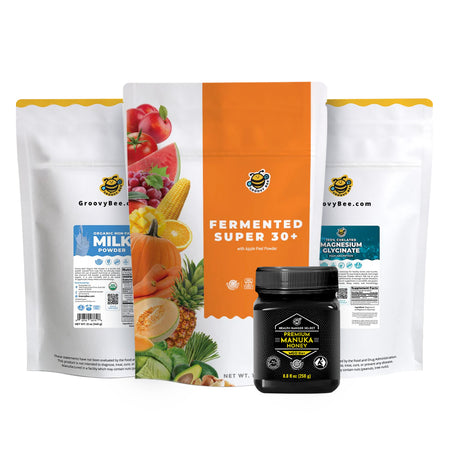 Made with more than 30 of the best fermented fruits, vegetables, wild herbs and more, Groovy Bee® Fermented Super30+ with Organic Apple Peel Powder is a tasty nutrient powerhouse that can help keep your body functioning optimally. Each ingredient is carefully chosen according to macrobiotic principles to ensure that you receive a highly potent combination of important enzymes, beneficial prebiotics and essential vitamins and minerals. We've also taken our ultra-potent superfood formula to the next level by infusing it with organic apple peel powder.