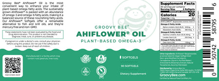 Groovy Bee® Ahiflower Oil 90 Softgels - Plant-Based Omega 3-6-9
