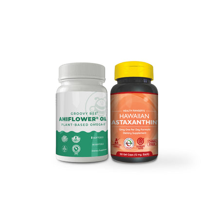 Health Ranger's Hawaiian Astaxanthin + Groovy Bee® Ahiflower Oil 90 Softgels - Plant-Based Omega 3-6-9 Combo Pack